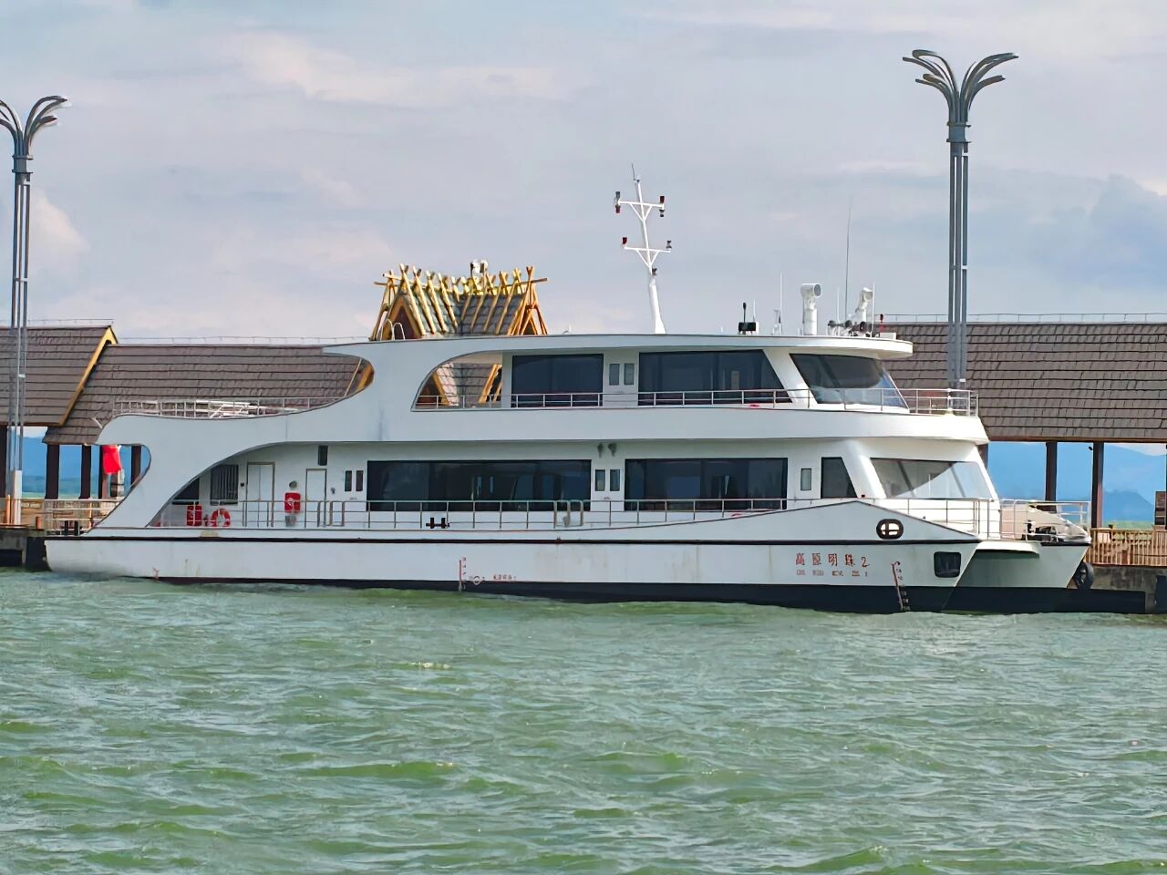 “高原明珠”系列游船由昆明文旅集團全資子公司云舟文旅公司打造,云南安而可船舶技術(shù)服務(wù)有限公司承建,是專(zhuān)為滇池水域定制的新一代純電新能源游船。“高原明珠1號”游船核定載客159人,系統配置入2組鋰電池組,每組容量838.6kWh,整船鋰電池容量共計1677.2kWh。經(jīng)過(guò)集中式的直流母線(xiàn)變頻電控設備進(jìn)行并網(wǎng),驅動(dòng)2臺150kW的主推電機。“高原明珠2號”游船核定載客66人。系統配置2組鋰電池組,每組容量532.2kWh,整船鋰電池容量共計1064.4kWh。經(jīng)過(guò)集中式的直流母線(xiàn)變頻電控設備進(jìn)行并網(wǎng),驅動(dòng)2臺100kW的主推電機。兩艘游船同步落地,已正式雙雙交付,驗證了中船賽思億三電系統的穩定性和成熟性。作為滇池“航旅融合”發(fā)展的標志性實(shí)踐,高原明珠系列游船通過(guò)探索“濕地+港口+船舶+景觀(guān)”一體化模式,串聯(lián)起滇池沿岸濕地、斗南花市、滇池綠道等景觀(guān),構建起“點(diǎn)—線(xiàn)—面”結合的全域旅游動(dòng)線(xiàn),實(shí)現水上觀(guān)光與陸地游覽無(wú)縫銜接,推動(dòng)滇池文旅高品質(zhì)發(fā)展。